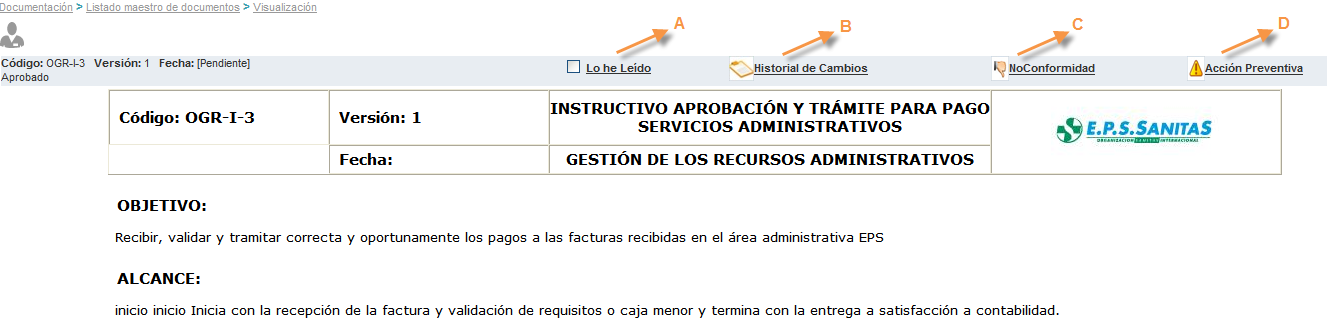 Luego de seleccionar el documento se mostrará lo siguiente: