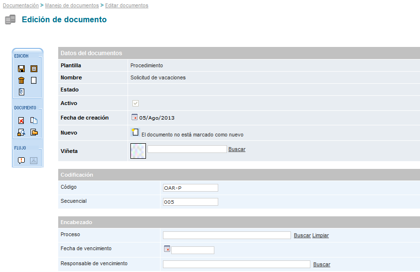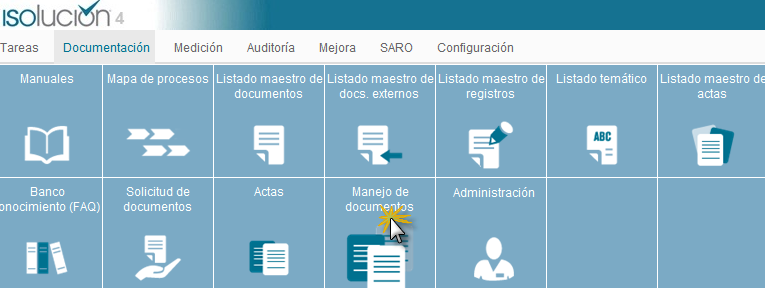 Esté menú del modulo de documentación permite administrar la gestión documental y alimentar información en los demás menús.