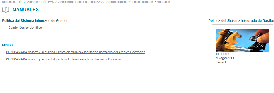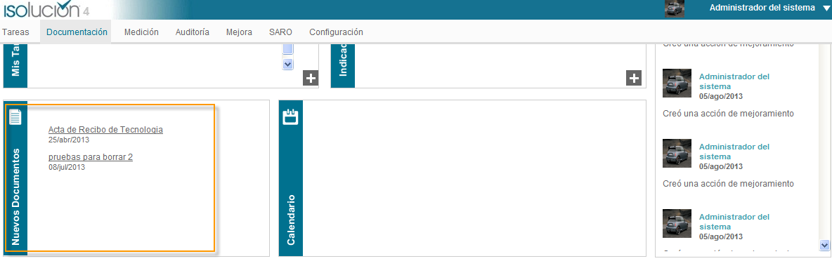 Al ingresar a la administración de documentación se encontrará el menú de administración general.