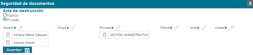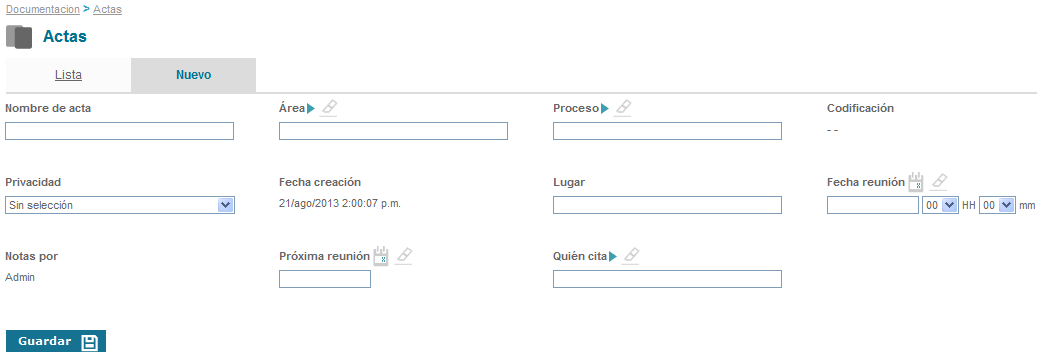 Privacidad: Lista desplegable para definir si el acta será publica o privada.