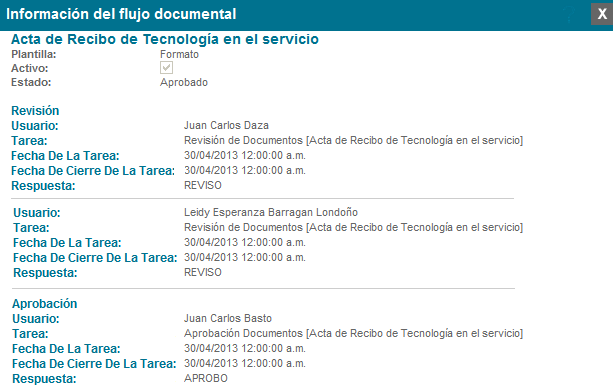 Plantilla: Listado de plantillas para la selección del tipo de documento al cual se le definirá el modelo de revisión y aprobación.