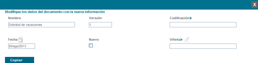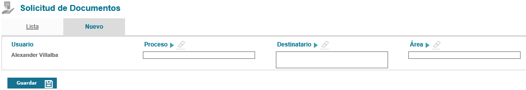 Nombre Documento : Campo de texto para nombrar el documento al cual se esta realizando la solicitud.
