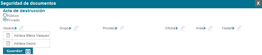 los usuarios seleccionados se mostrarán listados. Estos usuarios se podrán quitar utilizando el icono