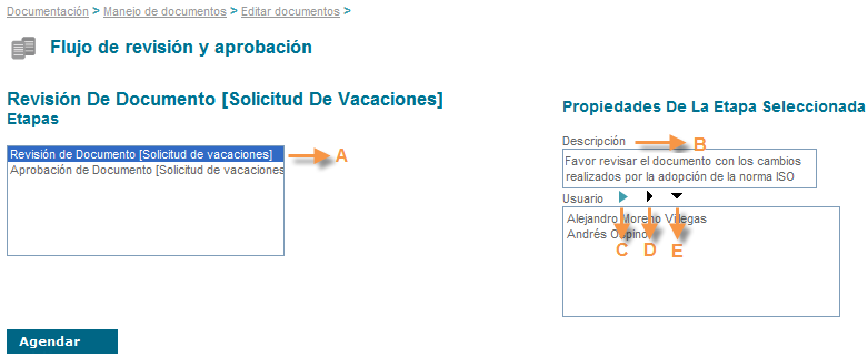 Luego de definir plantilla y la etapa del flujo, ISOlución® habilitará la opción de incluir el (los) responsable (s).