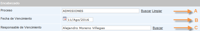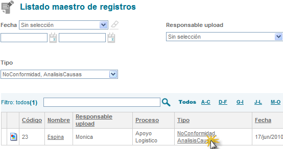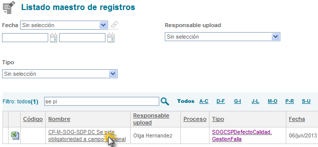 Proceso: (opcional) Buscador para definir el proceso al cual pertenece el registro.