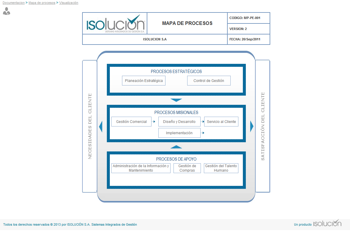 Este módulo permite administrar, publicar y controlar los documentos y registros, utilizando plantillas predeterminadas y dinámicas, para procedimientos, instructivos, manuales, mapas de procesos, actas y demás documentos que se generan al interior del Sistema de Gestión de la organización.
