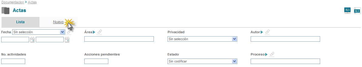 Para crear una nueva acta se ingresa a la opción “Nuevo”