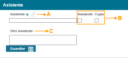 B: Check box para definir si el usuario seleccionado es asistente a la reunión o debe tener copia del acta