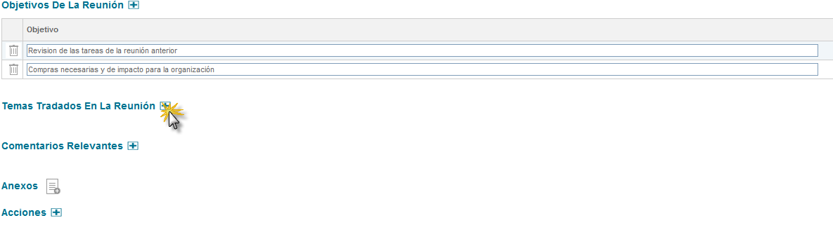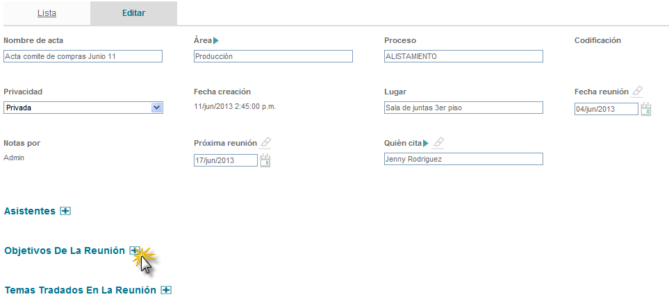para que ISOlución® habilite las secciones para el contenido del acta.