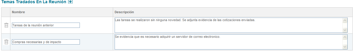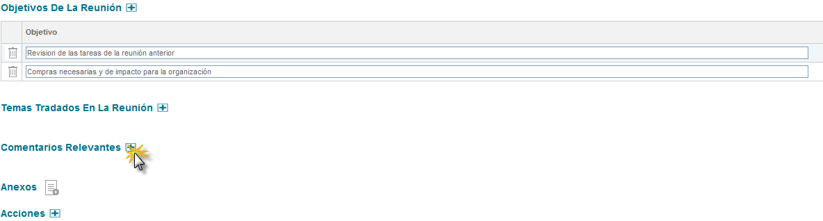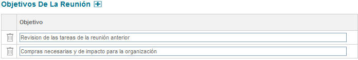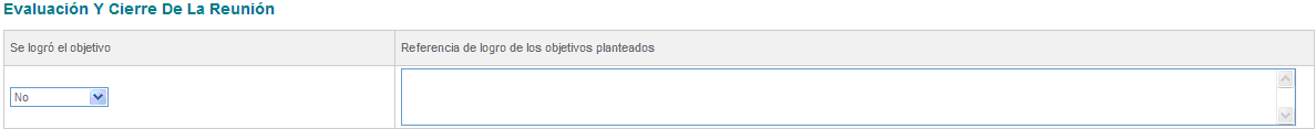 Referencia de logro de los objetivos planteados: Campo de texto para describir la conclusión de la reunión.