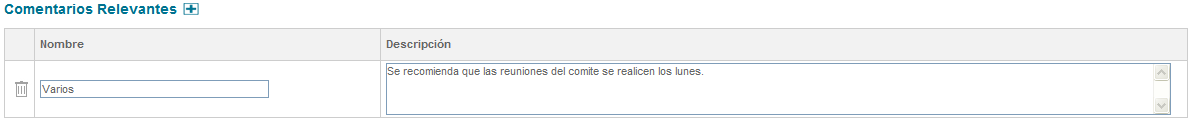 Descripción del comentario: Campo de texto para incluir el desarrollo del comentario.