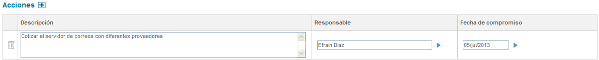 Fecha: Icono de calendario para definir la fecha de compromiso para realización de la actividad.