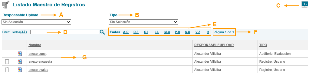 Opción que permite subir evidencias las cuales se mostrarán en el listado maestro de registros.
