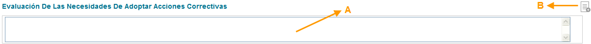 La evaluación de las necesidades de adoptar acciones correctivas es un campo de texto donde se describe y revisa la conveniencia y necesidad de tomar acciones correctivas para que la no conformidad no se vuelva a repetir.