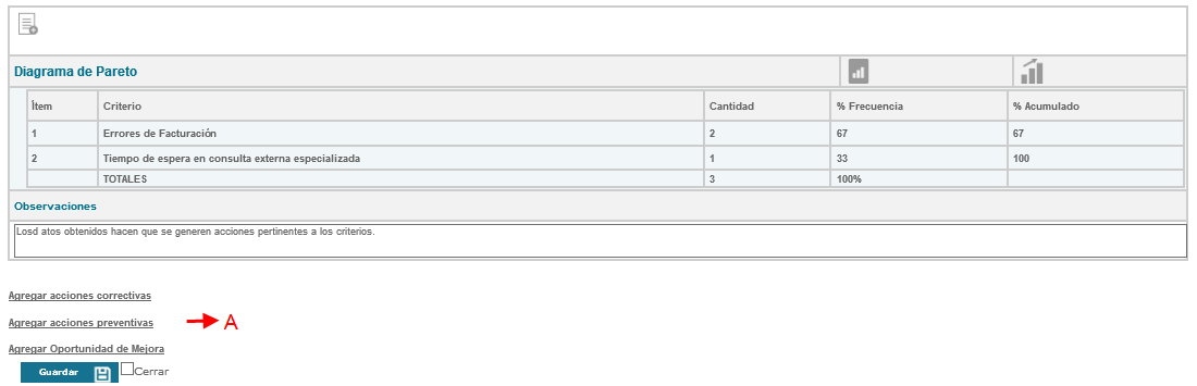 La opción de Diagrama de Pareto le permitirá analizar diversas situaciones de la compañía que ameriten acciones de mejora, esta opción de análisis de causa, aplican para cualquier tipo de acción (No Conformidad, Servicio No Conforme o PQR´s).