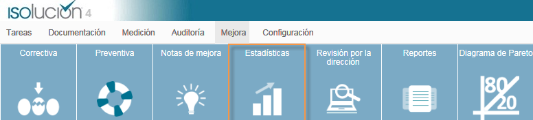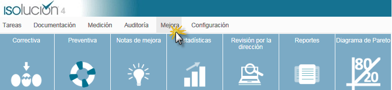 Este menú del módulo de mejora permite consultar las acciones de mejoramiento (correctivas, preventivas y de mejora) que se han generado en ISOlución®.