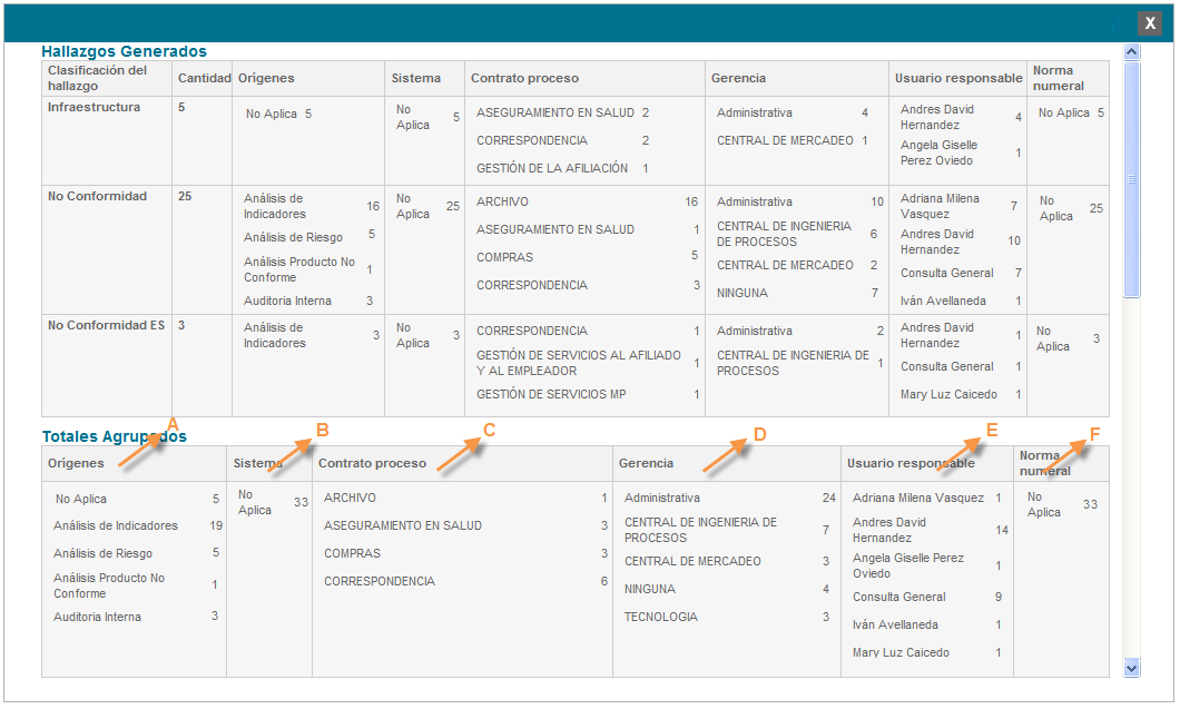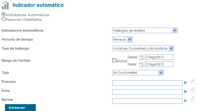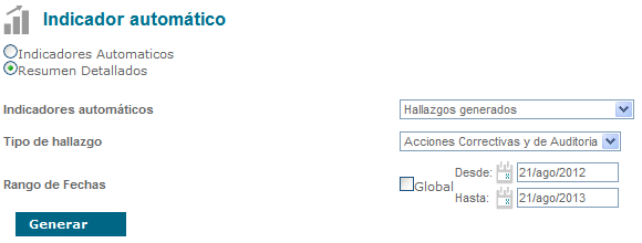 Esta opción consolidará todos los tipos de hallazgos (correctivos, preventivos, de mejora y provenientes de auditorías) en un solo reporte.