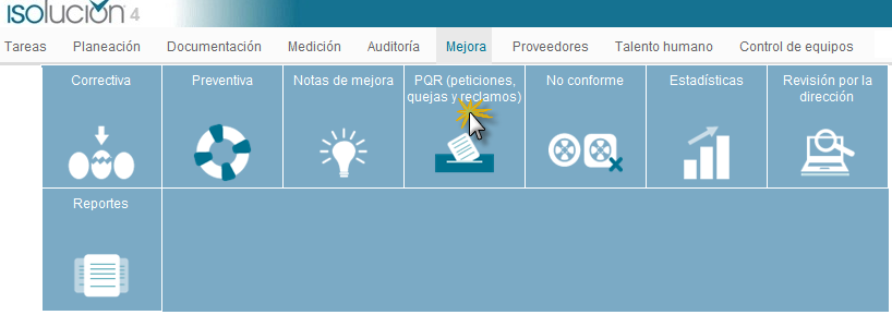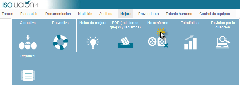 Este módulo permite el registro y gestión de productos no conformes, peticiones, quejas y reclamos; así como la gestión del proceso de mejora continua del sistema de gestión a partir de la revisión por la dirección y análisis estadísticos de la información.