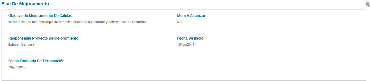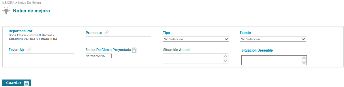 Notas de Mejora: En esta sección le permite al usuario la opción de proponer situaciones deseables para mejorar en el sistema de calidad.