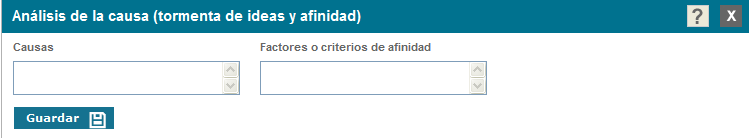 Campos de texto con cada uno de los factores creados desde la tabla básica Espina de pescado del módulo de configuración.