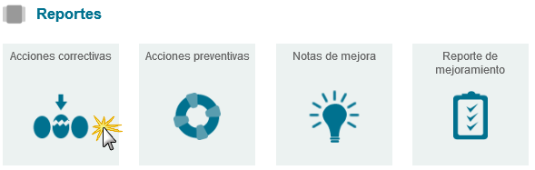 Acciones Correctivas: Dentro de esta sección se reportan las no conformidades, productos no conformes y quejas y reclamos; posteriormente se asignan acciones encaminadas a eliminar la causa o causas de la no conformidad detectada u otra situación indeseable.