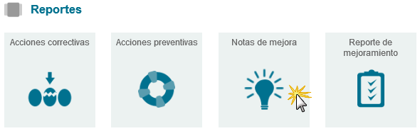 La opción de notas de mejora muestra el listado de las acciones creadas desde la opción notas de mejora del módulo de mejora.