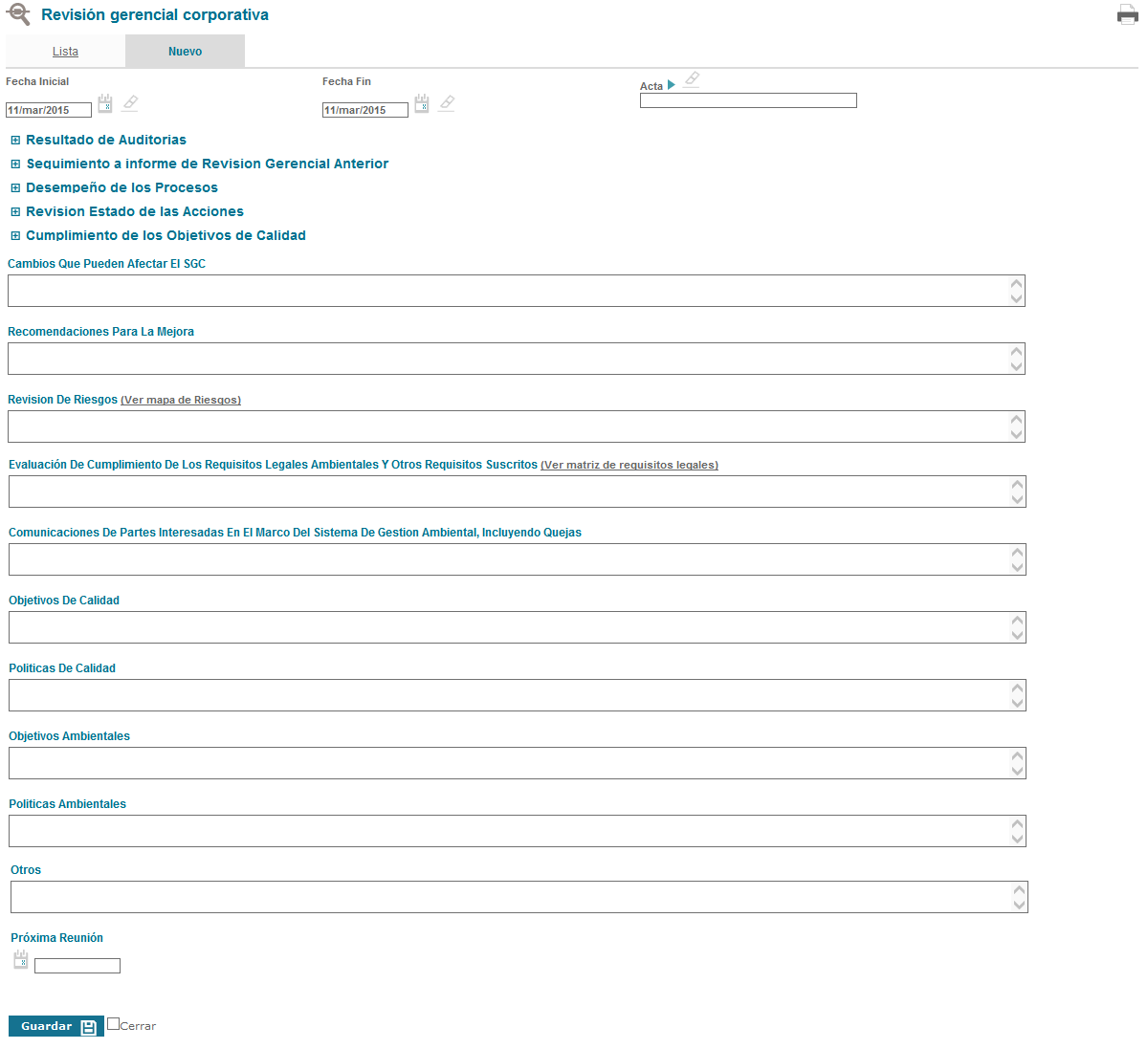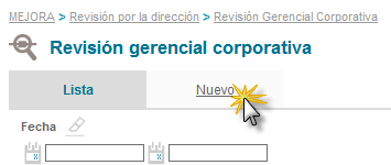 Para crear una nueva revisión gerencial corporativa se ingresa a la opción “Nuevo”