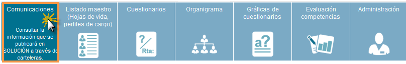 Al dar clic sobre la sección de “Comunicaciones” se muestra las publicaciones realizadas, dentro de estas publicaciones se pueden publicar las evaluaciones que sean necesarias realizar y que estén dirigidas a los funcionarios con acceso a la herramienta.