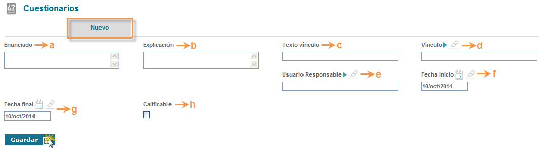 Al ingresar por la opción “Nuevo” el usuario tendrá la posibilidad de adicionar un nuevo cuestionario: