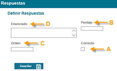 de desplegara una ventana que permite incluir las opciones de respuesta a esa pregunta: