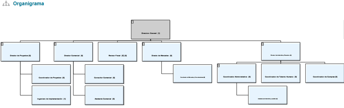 Al ingresar por está opción se visualiza la estructura actual de la organización donde: