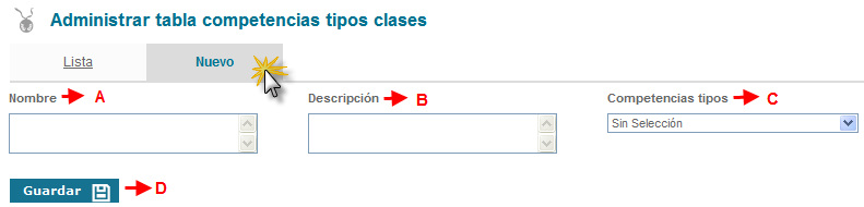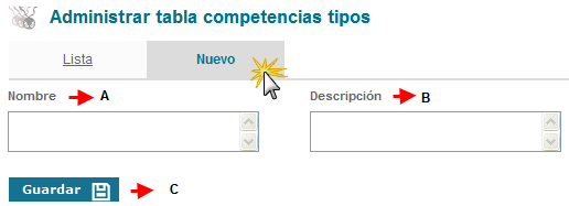 Para adicionar un nuevo tipo de competencia, seleccionar Nuevo: