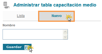 Para adicionar un nuevo medio de capacitación, se debe seleccionar la opción Nuevo: Allí se habilita un campo de texto para el registro del nuevo nivel de capacitación crear, una vez se realiza el registro se debe dar clic en el icono