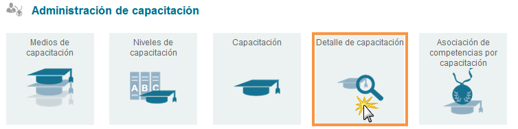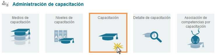 Permite administrar las competencias y capacitaciones e ingresar información para alimentar las tablas básicas del módulo.