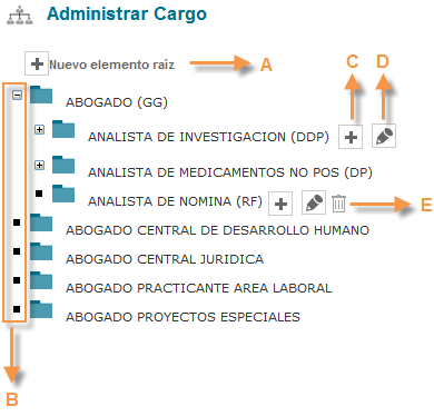: Dando clic sobre este icono se permite crear un cargo hijo del cargo raíz al dar clic allí se mostrará la siguiente ventana.